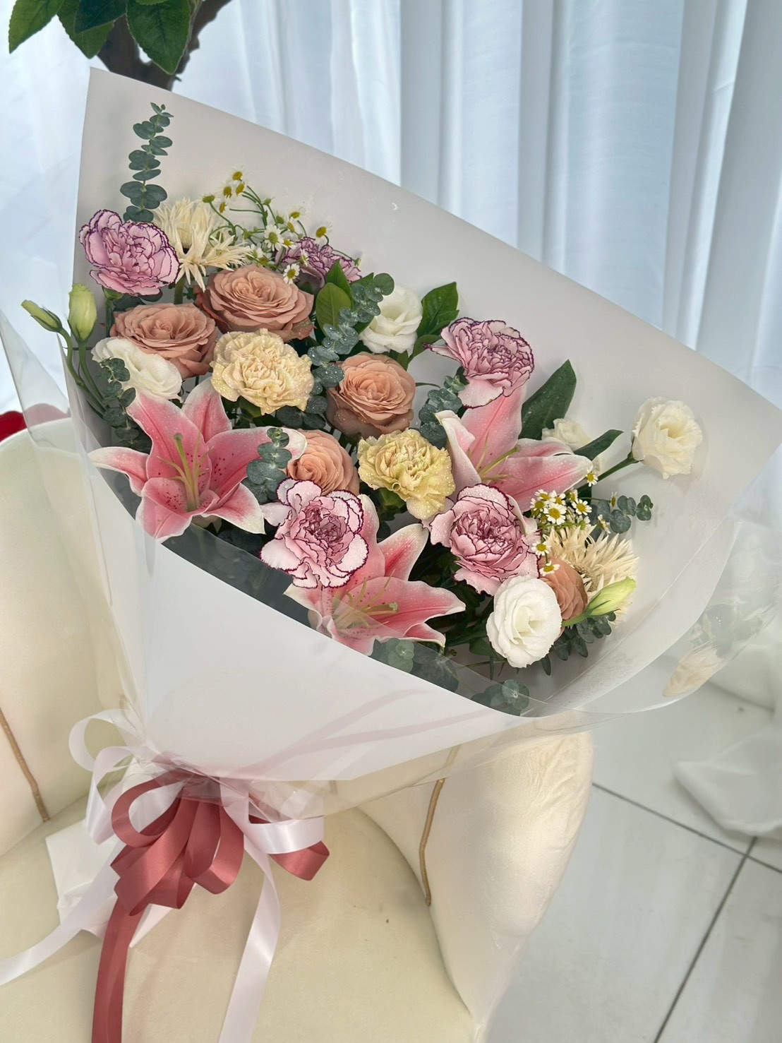 ช่อลิลลี่ชมพูนู้ดโทนอบอุ่นหรู