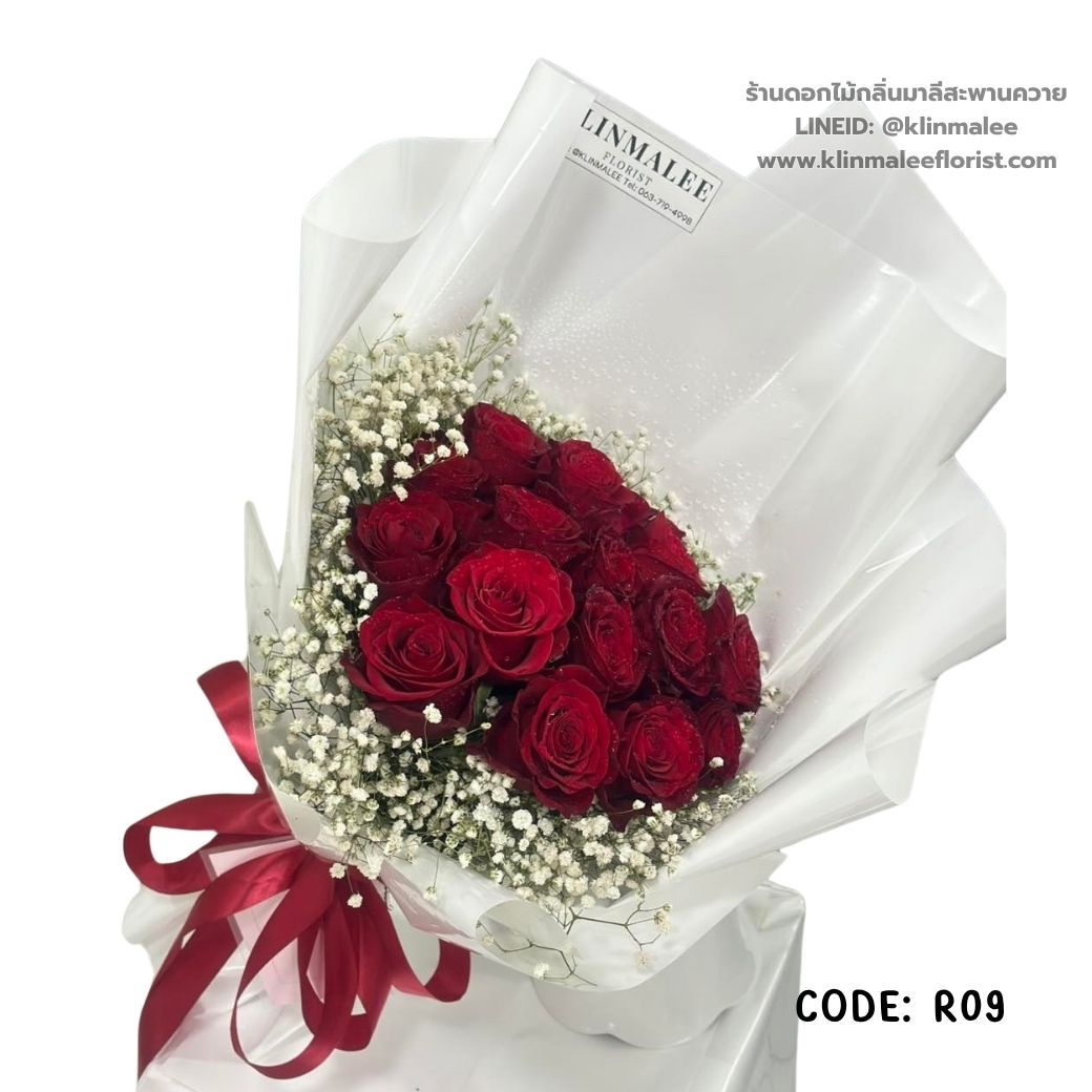 ช่อกุหลาบแดงทรงกลมฟูสวย